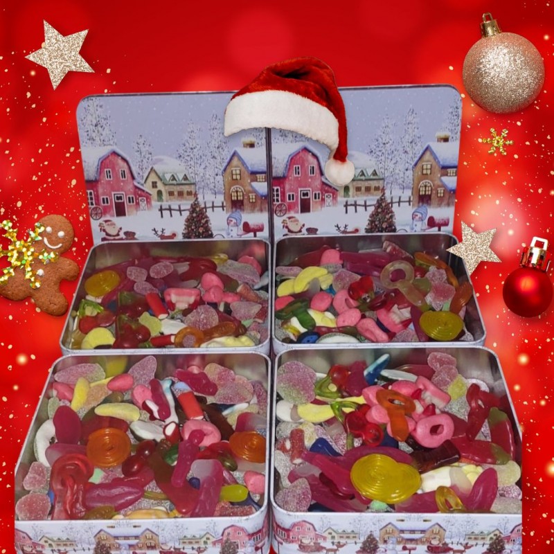 magnifique boîte de chiques en métal classique avec environ 1000 g de chiques mix