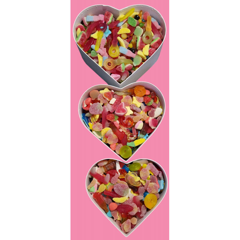 Cœur avec boîte remplie de chiques